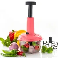 Push Food Chopper, Steel Large Manual Hand-Press Vegetable Chopper Mixer Cutter