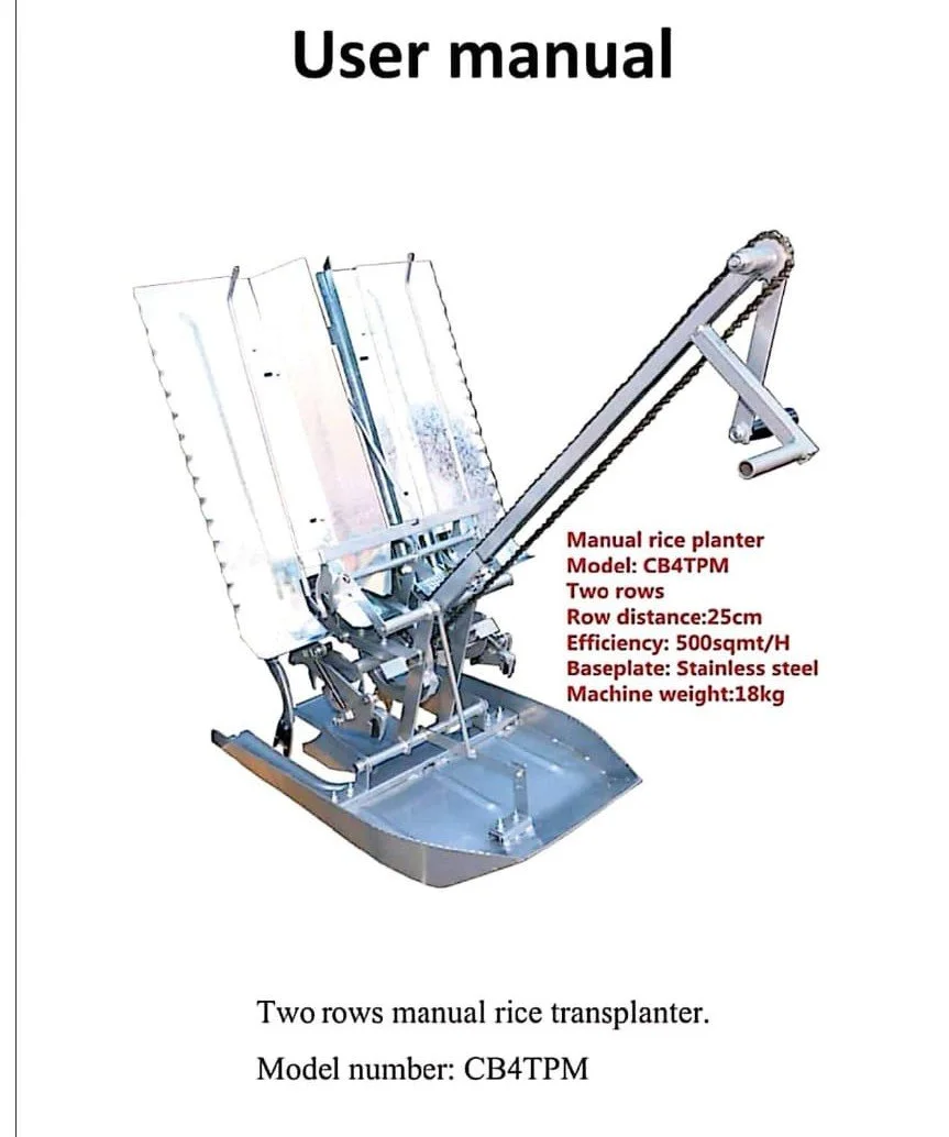 Don't miss out on the opportunity to streamline your rice planting operations. Order the SS Body Manual Rice Transplanter 2 Rows today and experience the future of rice planting firsthand!