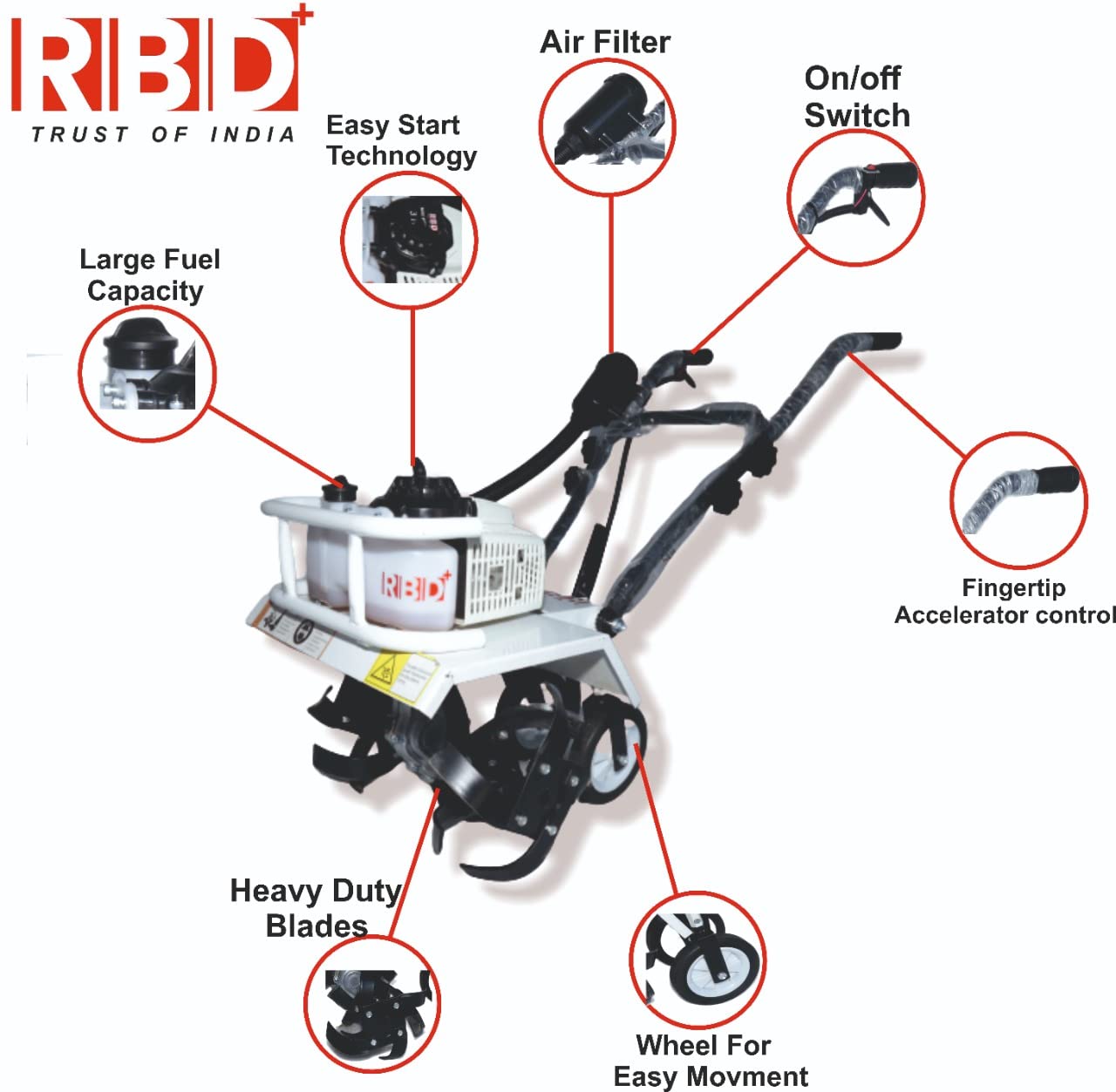 Crafted with durability in mind, the RBD Heavy Duty Power Tiller is built to withstand the rigors of agricultural and garden use. Its sturdy construction ensures long-lasting performance, making it a reliable companion for years to come.