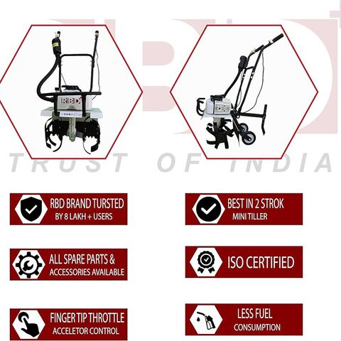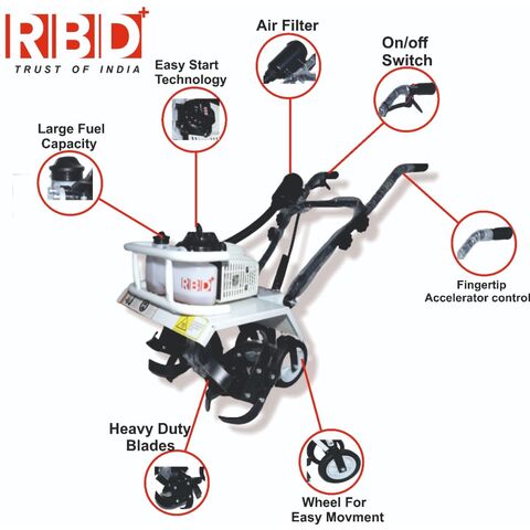 Invest in the RBD Heavy Duty Power Tiller, Cultivator, Rotary, Weeder with 2 Stroke 3 HP Engine for Agriculture & Garden Use, and witness the transformation of your agricultural and gardening tasks. Maximize productivity, save time and effort, and achieve remarkable results with this high-performance machine. Order yours today and take your farming and gardening to new heights.