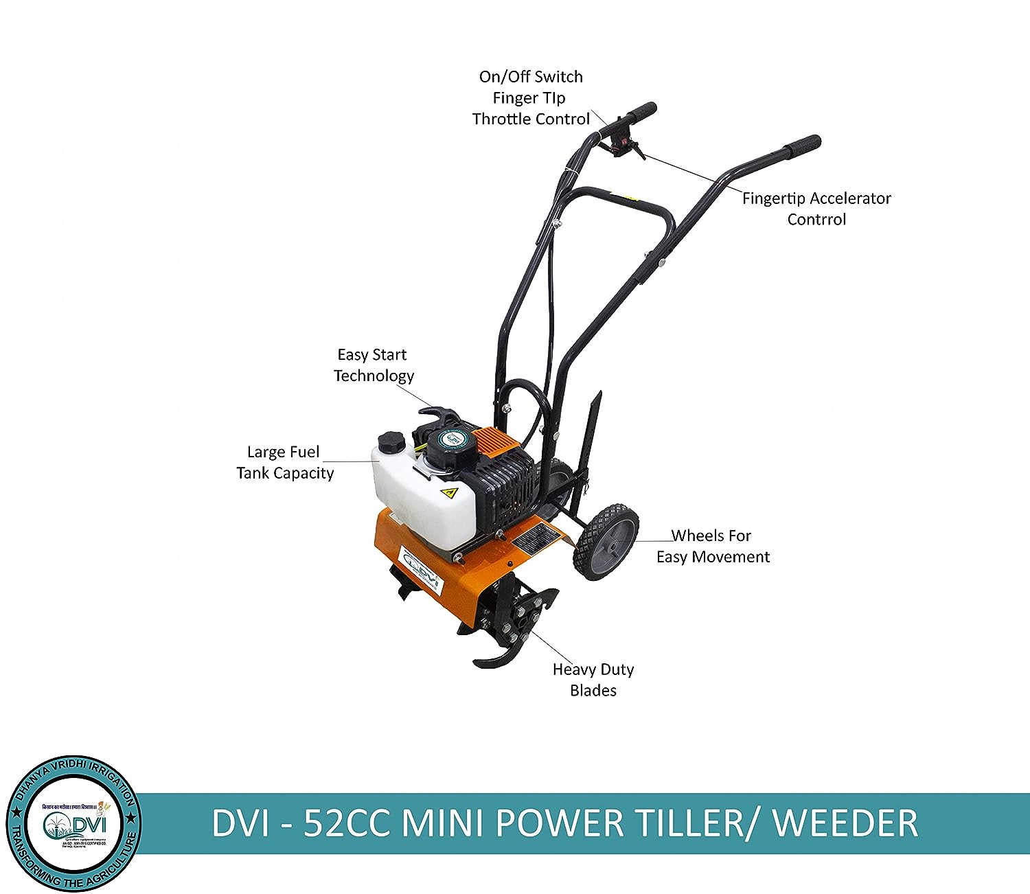 In summary, our 2 Stroke Mini Power Tiller / Weeder, with its powerful 52 cc engine, ergonomic design, fuel efficiency, and exceptional performance, is the perfect tool to enhance your gardening endeavors. Experience the ease and efficiency of this mini power tiller and take your gardening to the next level.