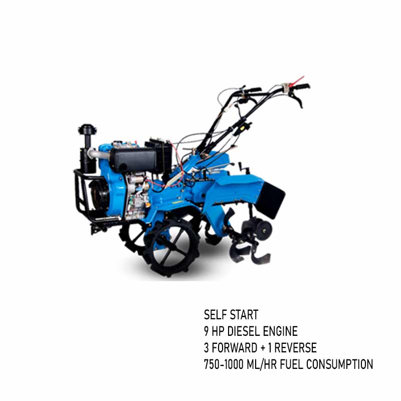 Introducing the Self-Start Diesel Power Cultivator, a high-performance gardening tool designed to revolutionize your cultivation experience. With its powerful 9 HP engine and convenient handlebar equipped with a toolbox, this cultivator is a must-have for any gardening enthusiast.