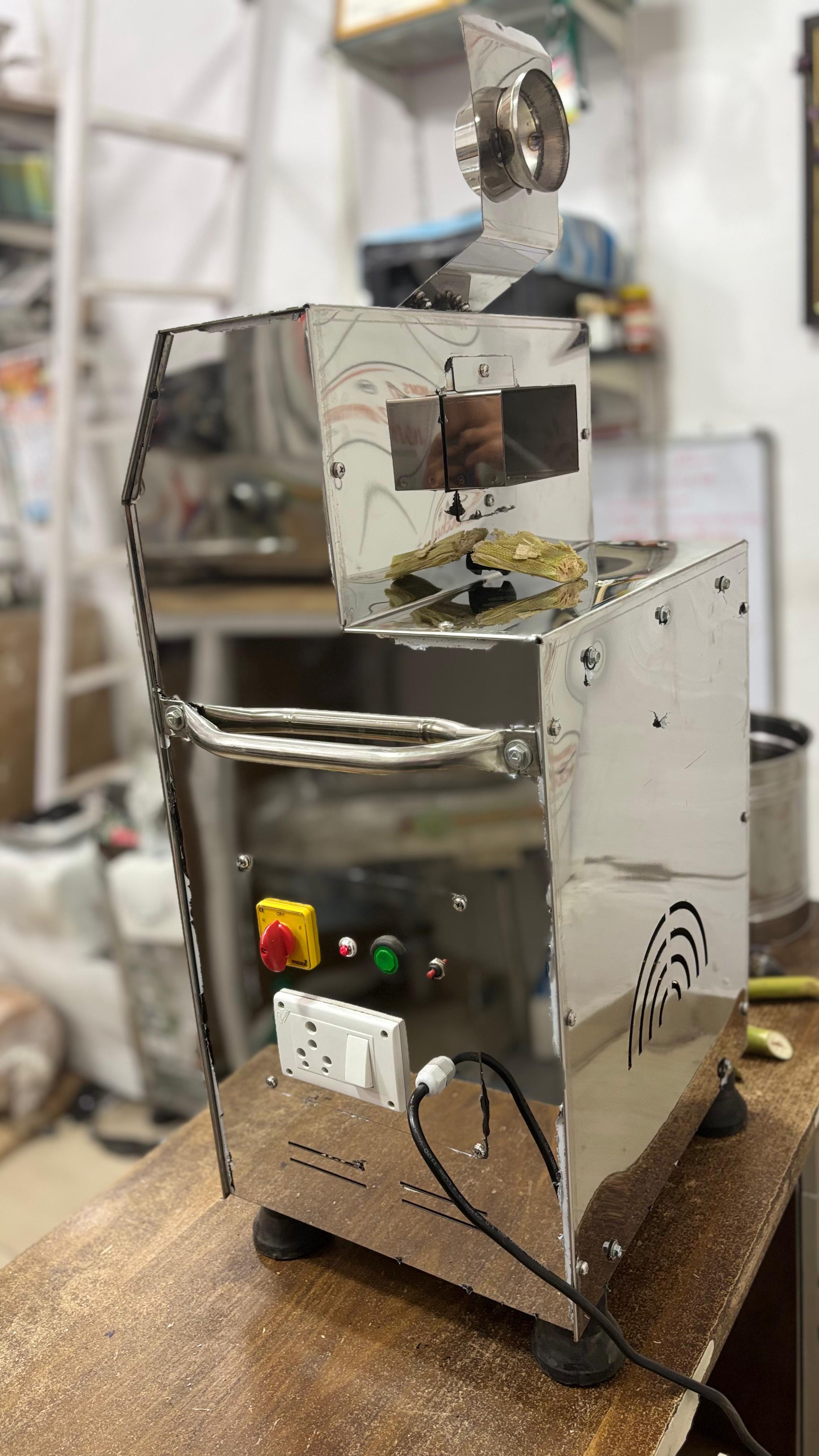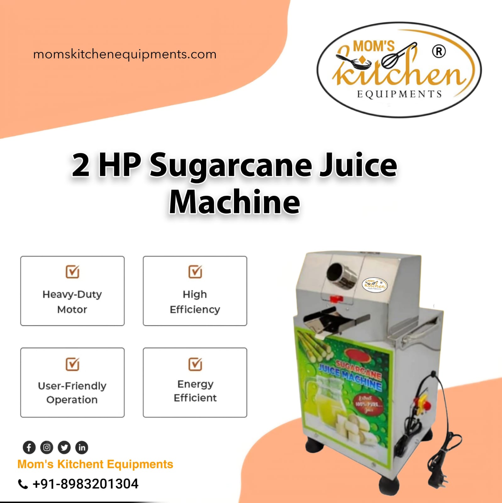 Mom's Kitchen Equipments BRAND Provide quality product which is very usable and it gives more comfortable for Bussiness. 1 Year pcs to pcs motor warranty MADE IN INDIA; Body Made From 100% SS-304 Food grade Metal. Crushing Capacity: 200/250 glass/Hr.3 Roller Mechanism which gives approx. 82% Juice Extraction.Easy Control System. 2 HP; 1.55 KW; 400 Watt.With Extra Power plug so, you can use mixer or other electric equipment from machine. So, No need of extension board Size: 450*250*360 MM; 40 KG. Weight; Phase: Single. Specifications
