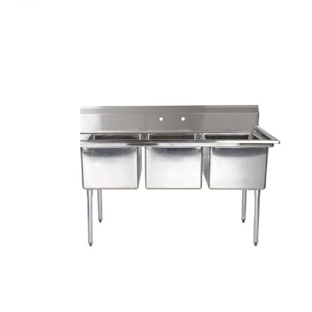 Crafted from premium-grade stainless steel, this triple sink unit is built to withstand the rigors of a busy kitchen environment. The corrosion-resistant material ensures long-lasting durability, making it a reliable investment for your business. Its sleek and polished finish not only adds a touch of elegance to your kitchen but also makes cleaning and maintenance a breeze.