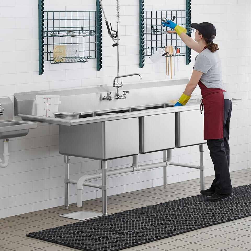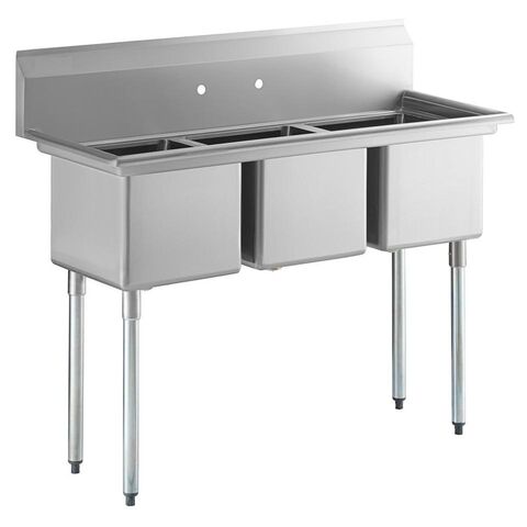 Featuring three spacious sink compartments, this unit offers ample space for washing, rinsing, and sanitizing dishes, utensils, and other kitchen essentials. The strategically designed layout allows for efficient workflow, enabling your staff to handle large volumes of dishes with ease. The deep basins prevent splashing and ensure that water stays contained, minimizing mess and maximizing productivity.