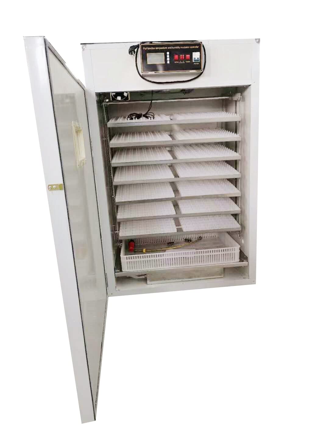 Designed with precision and innovation, this incubator is the perfect choice for both professional breeders and hobbyists alike.Crafted with a sturdy metal body, this incubator ensures durability and longevity, guaranteeing years of reliable performance. Its robust construction not only protects the eggs from external factors but also provides excellent insulation, maintaining a consistent temperature and humidity level for optimal hatching conditions.Equipped with advanced automation technology, this incubator takes the guesswork out of egg hatching. The automatic features allow for effortless operation, saving you time and effort. With its user-friendly interface, you can easily set and monitor the temperature, humidity, and turning intervals, ensuring the ideal environment for your eggs to develop and hatch successfully.The Automatic 1000 Capacity Metal Body Incubator boasts a generous capacity, accommodating up to 1000 eggs at a time. This makes it an ideal choice for commercial breeders or those with larger-scale operations. Whether you're hatching chicken, duck, quail, or any other poultry eggs, this incubator provides ample space to cater to your needs.One of the standout features of this incubator is its exceptional temperature and humidity control. The precise temperature control system ensures a consistent temperature range, while the humidity control mechanism maintains the optimal moisture level required for successful hatching. This attention to detail guarantees a higher hatch rate and healthier chicks.Safety is paramount when it comes to egg incubation, and our Automatic 1000 Capacity Metal Body Incubator prioritizes it. Equipped with an automatic power backup system, it ensures uninterrupted operation even during power outages. Additionally, the incubator is designed with an alarm system that alerts you in case of any deviations from the set parameters, allowing you to take immediate action.In conclusion, the Automatic 1000 Capacity Metal Body Incubator is the ultimate solution for efficient egg hatching. Its durable metal body, advanced automation features, and generous capacity make it a top choice for breeders of all levels. With precise temperature and humidity control, along with safety features, this incubator guarantees higher hatch rates and healthier chicks. Invest in this incubator today and witness the transformation of your egg hatching process.