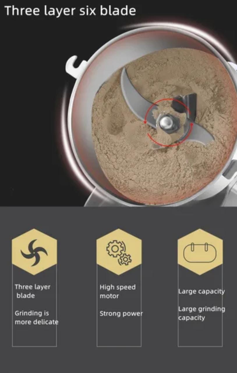 - Generous Capacity: With a capacious 3500-gram capacity, this spice grinder allows you to grind large quantities of spices at once, saving you time and effort in the kitchen. Perfect for both home chefs and professional kitchens.