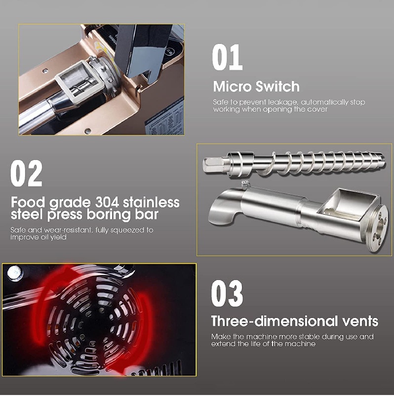 Unparalleled Efficiency: Equipped with advanced technology, this machine guarantees high oil extraction rates, maximizing your yield and minimizing waste. Say goodbye to inefficient manual methods and hello to a streamlined oil extraction process.