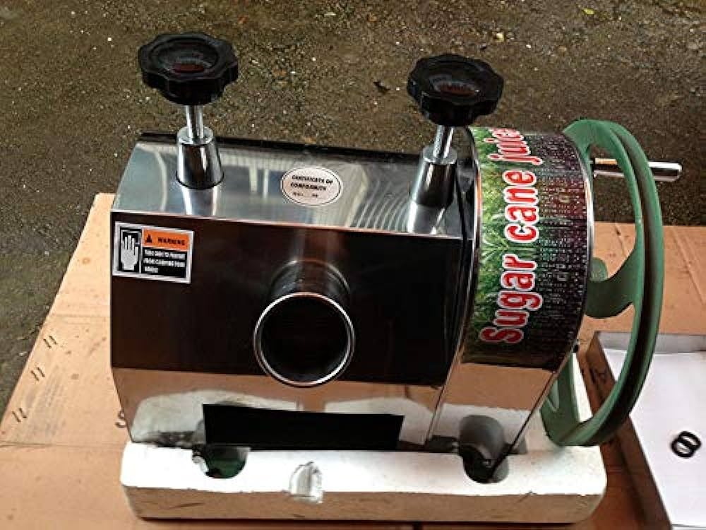 Crafted from premium stainless steel, this juicer is built to last. Its sturdy construction guarantees long-lasting performance, making it a reliable companion for all your juicing needs. The sleek and modern design adds a touch of elegance to any setting, while the compact size allows for easy storage and transportation.With its manual operation, this sugarcane juicer offers complete control over the juicing process. Simply insert the sugarcane stalk into the machine and turn the handle to extract the juice. The ergonomic handle provides a comfortable grip, allowing for effortless juicing without straining your hands or wrists.Equipped with sharp and efficient blades, this juicer ensures quick and efficient juice extraction. The stainless steel construction of the blades guarantees durability and resistance to corrosion, ensuring a hygienic and safe juicing experience. The juicer also features a built-in filter to separate the juice from any pulp or seeds, resulting in a smooth and pulp-free beverage.