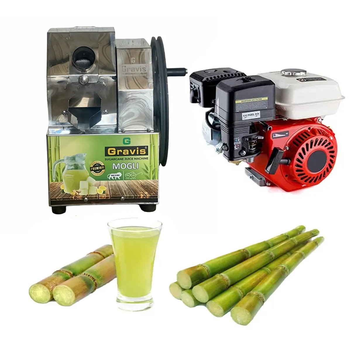 Boost your sugarcane juice production with the Manual Gravis Sugarcane Juicer Machine, a powerful and efficient solution designed for commercial juice vendors, roadside stalls, and juice bars. Engineered with a 6.5 horsepower (HP) engine, this machine offers the perfect balance of manual control and mechanical power to extract juice quickly, cleanly, and with maximum yield.